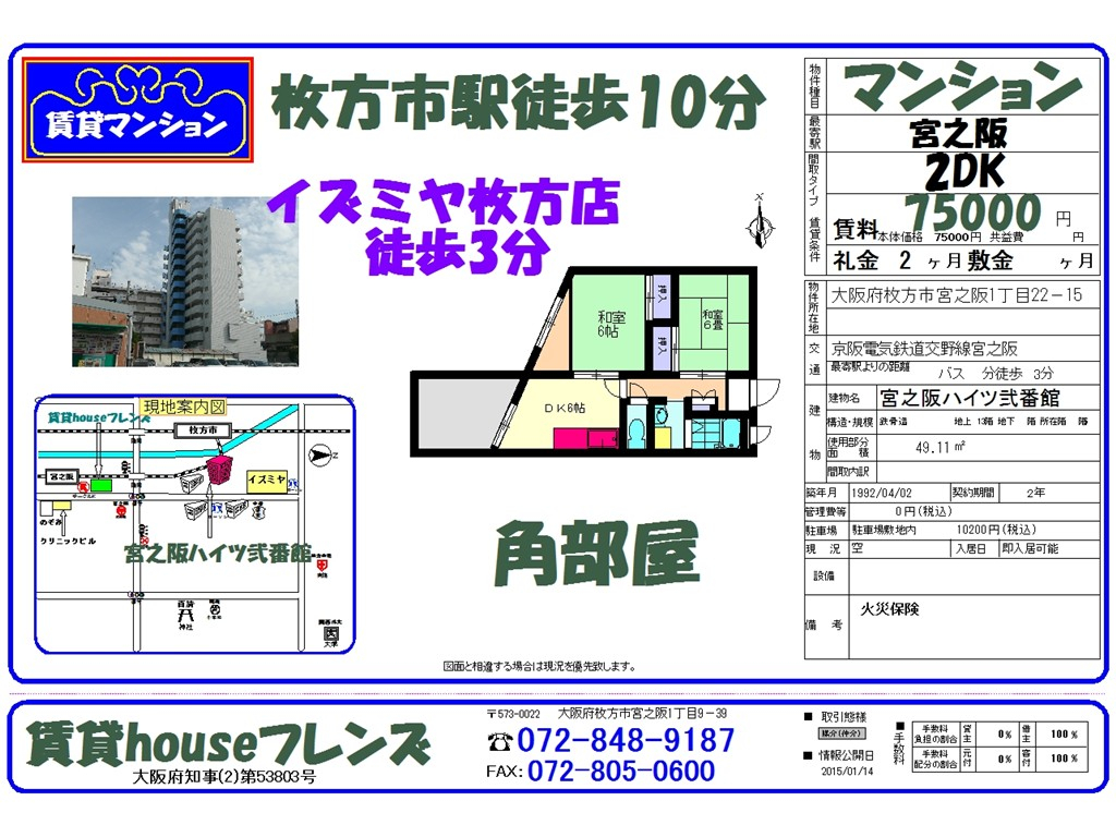 宮之阪・中宮・星丘・枚方市・賃貸マンション・賃貸アパートのフレンズ